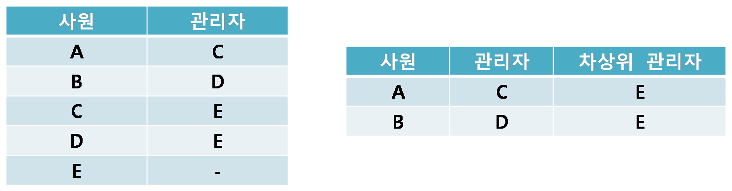 이런식으로 사원의 관리자의 관리자를 알아내는데 사용할 수 있다.
