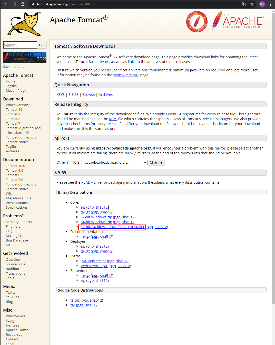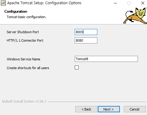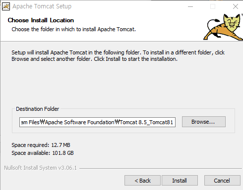 다운 받은 apache-tomcat-8.5.65.exe 파일을 실행시켜 줍니다.