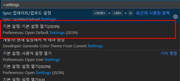 F1키 ->settings검색 -> 기본설정(defaultsettings) 를 눌러서