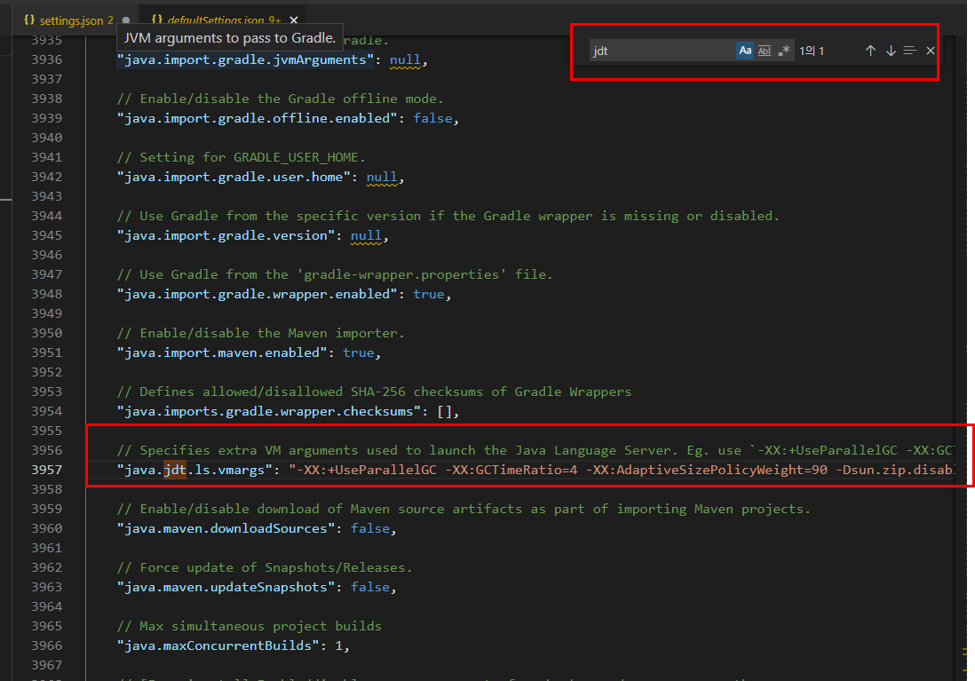 라는 형태로 만들라고 하는데 전 java.jdt.ls.vmargs가 없더라구요... 그래서 또 찾아보다