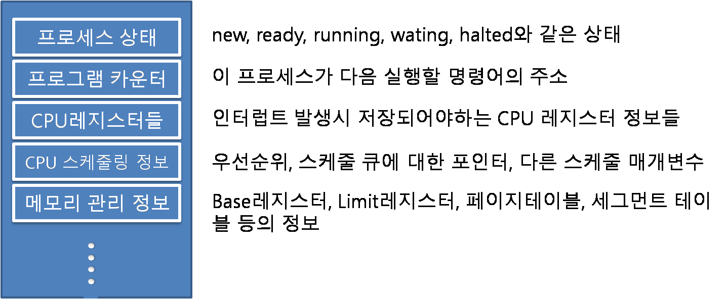 이를 요약하면 프로세스가 진행됨에 따라 변하는 모든 정보에 대한 저장소 역할을 한다. 프로세스 상태와 프로그램 카운터는 PCB의 핵심 요소라 할 수 있으니 꼭 알아두면 좋을 것 같습니다.(동작할 때는 나머지도 중요하겠지만..)