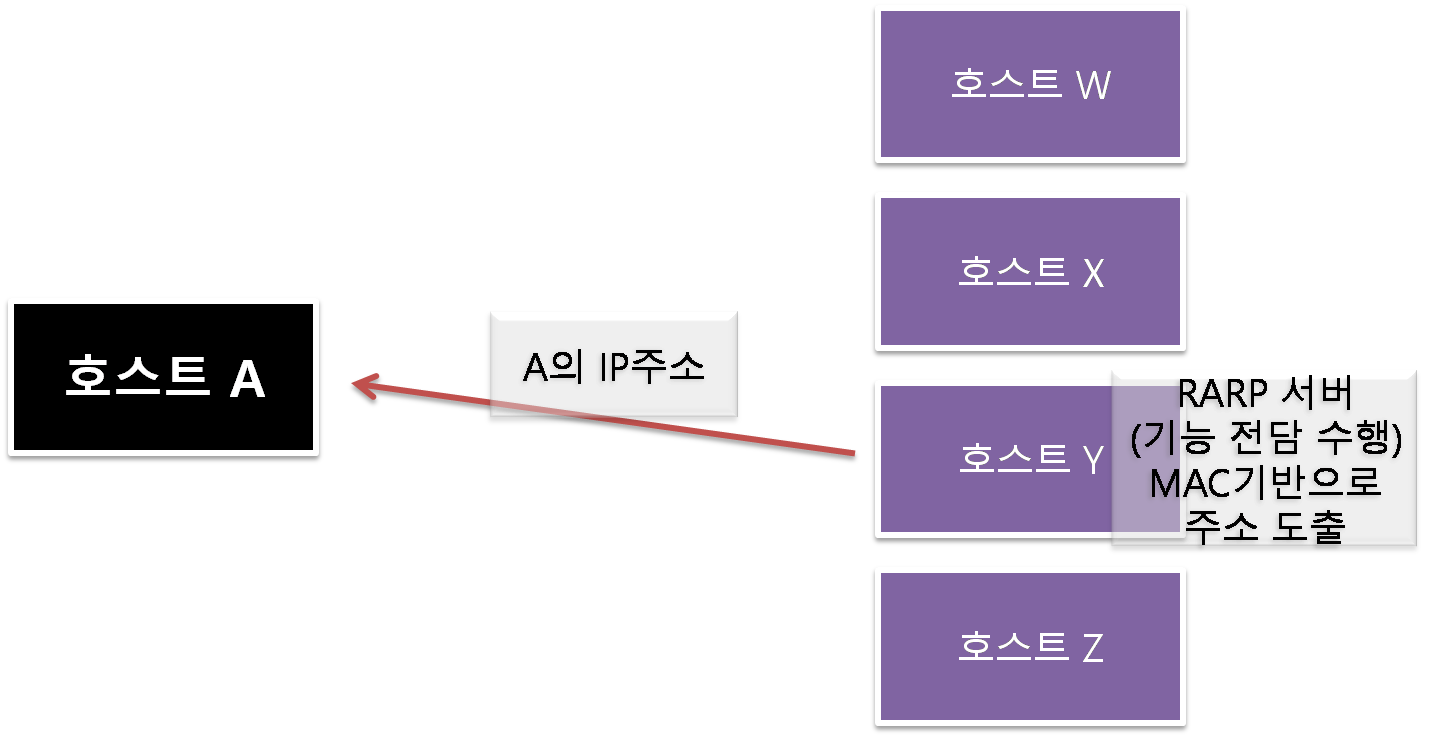 - RARP기능을 전담하는 서버는 MAC주소에 맞는 IP주소를 전송한다.
